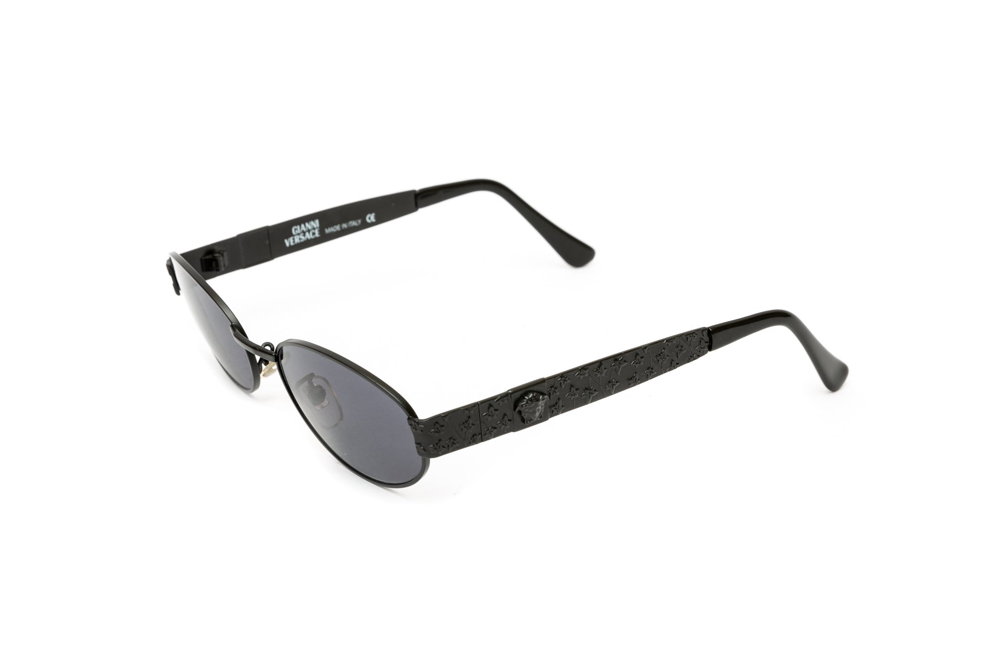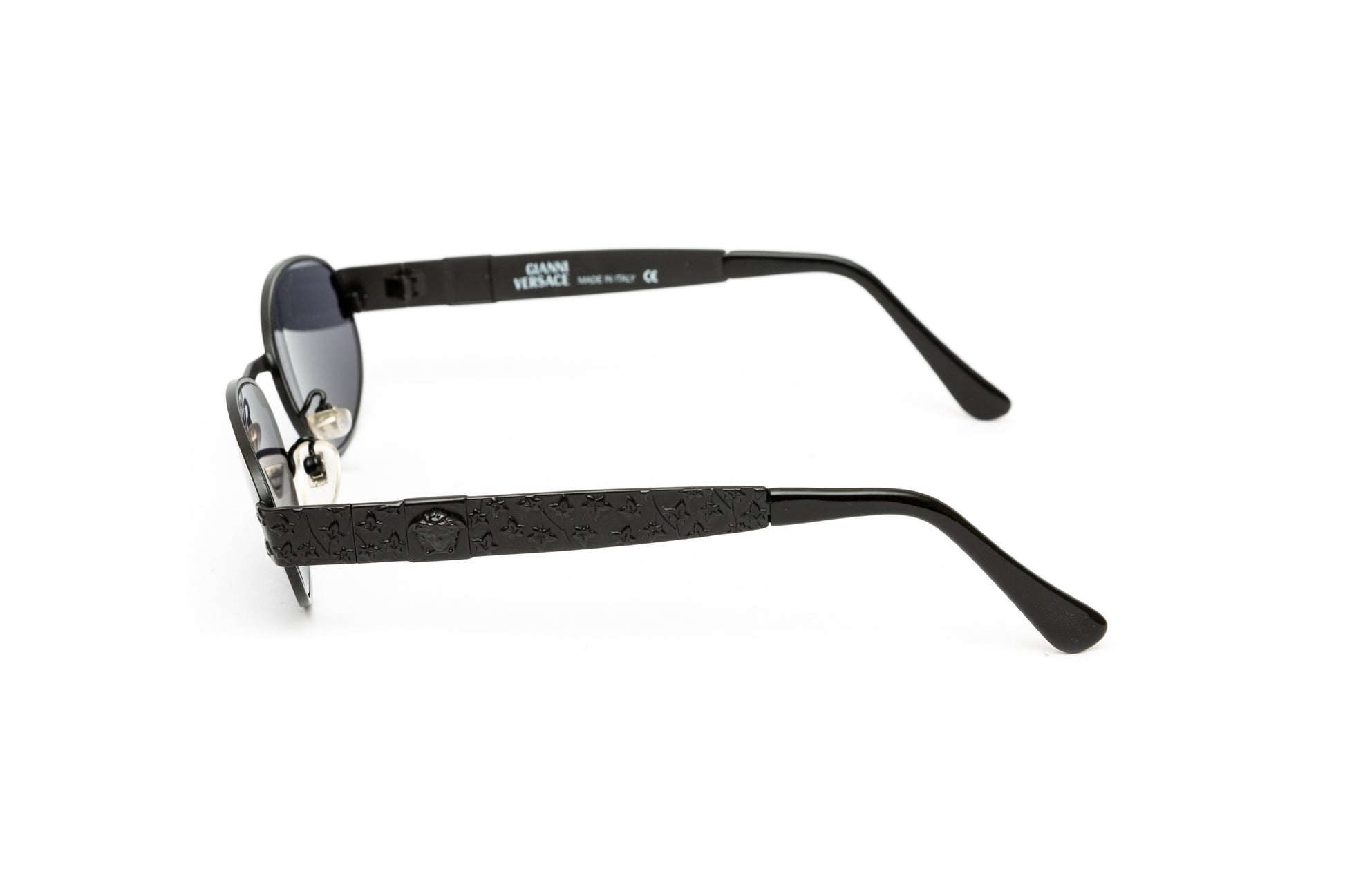 Vintage Gianni Versace Matte Black Medusa Oval Sunglasses